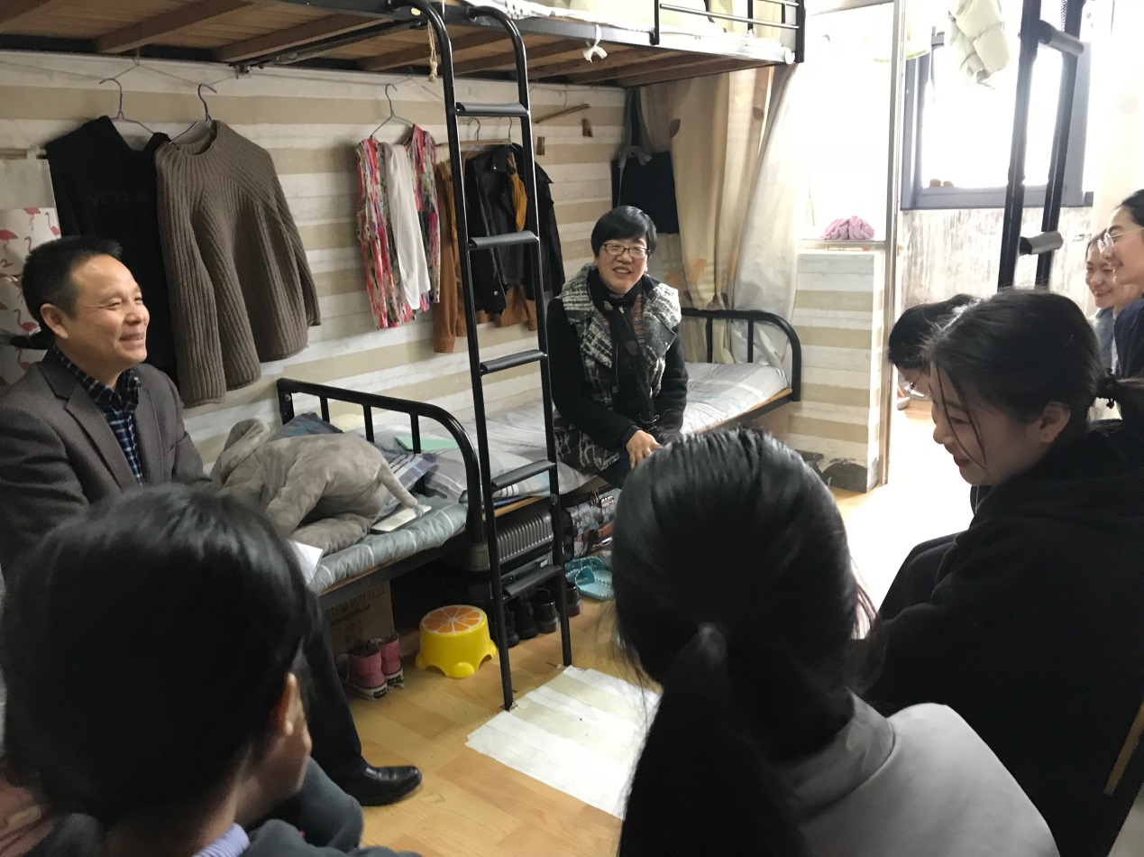 3月13日中午,校党委书记崔戴飞走访慰问“联系寝室”,医学院党总支书记余文富陪同看望。