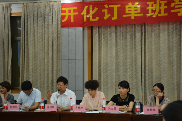 开化县卫生和计划生育局副局长汪伟华介绍了开化县医疗单位的现况,他说,开化班的成长与蜕变离不开院校双方的共同支持与努力,相信双方都会认真落实合作办学中的各项任务,培养出拥有一颗感恩的心、先利他而后自利的优秀护理人才,为开化的医疗卫生事业做出贡献。
