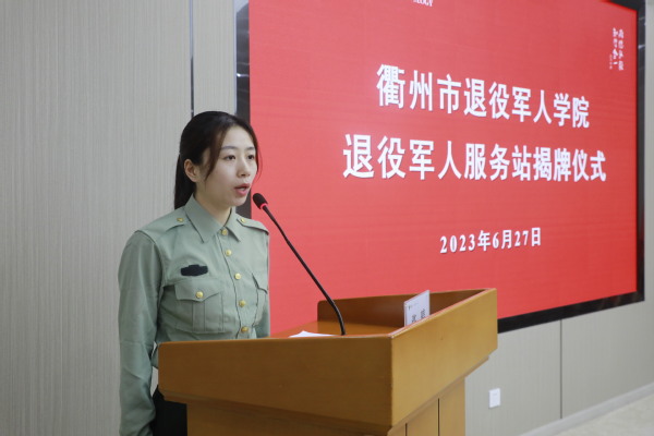 6月27日上午,衢州市退役军人学院(退役军人服务站)揭牌仪式在我校举行,我校党委委员、副校长徐浪静,衢州市退役军人学院党组成员、副局长蓝红星,衢州市退役军人事务局相关处室、我校继续教育学院、学工部、退役军人服务站负责人出席本次活动。