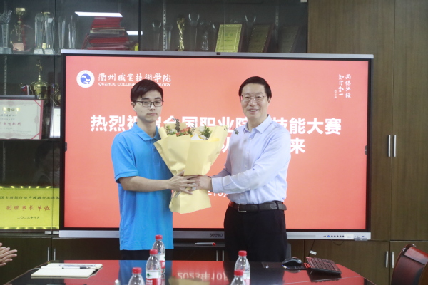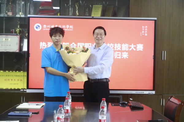 10月26日上午,校党委书记徐须实,党委副书记、校长吕延文,看望、慰问我校获全国职业院校技能大赛(高职组)一等奖团队师生(教师王张夫,学生朱凯杰、江明晓、王乾),办公室、教务处、数字校园中心、信息工程学院等部门参加。