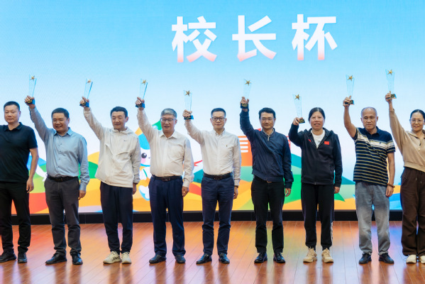 校党委委员、副校长姚水洪(左5)代表我校举起“校长杯”奖杯