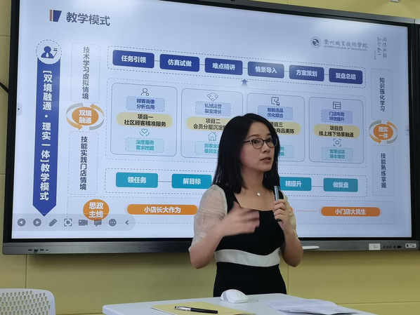 首先,我院陶莉莉从课程基本信息、教学目标、教学模式、课程结构、课程思政、课程评价等多维度分享了省一级核心课程《店长实务》课程建设方案。
