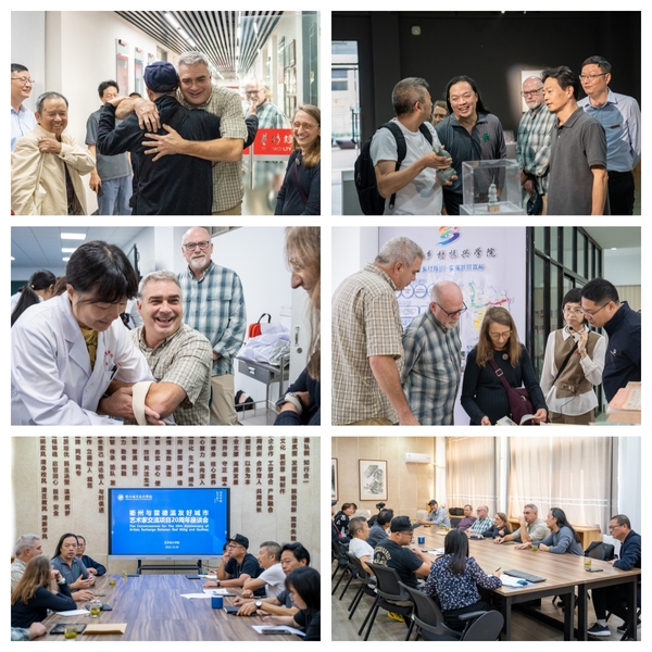 在衢期间,彭涛一行在我校和市相关部门的陪同下参观了杜立特行动纪念馆、水亭门街区、城市展览馆、龙游溪口未来社区、柯城区麻蓬村、衢州市两中心、衢州二中,共同回顾衢州与雷德温两座友好城市交往的历史,进一步感受衢州深厚的文化底蕴和蓬勃发展。通过参加非遗剪纸、水脉艺术节、衢江区云溪乡工道瓷艺术创作交流、信安湖夜游、廿里上宇村枫林野奢基地、衢江区东坪村艺术写生和采风创作,以及共同在美术馆布展,留下了精彩难忘的回忆,缔结了深厚的友谊。