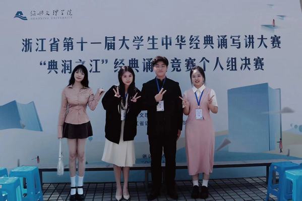 近日,浙江省第十一届大学生中华经典诵读竞赛决赛在绍兴文理学院顺利落幕。今年共有48所高职院校共339名选手参赛。经过激烈角逐,在专科组个人赛中,我校获得7项省级奖项,其中一等奖2项,二等奖2项,三等奖3项。其中艺术设计学院22艺术设计专业丁思仪(张皓鸣、倪剑指导)、文化旅游学院21休闲体育专业卢可意(龚慧兰、闫姗指导)两位同学喜获一等奖。
