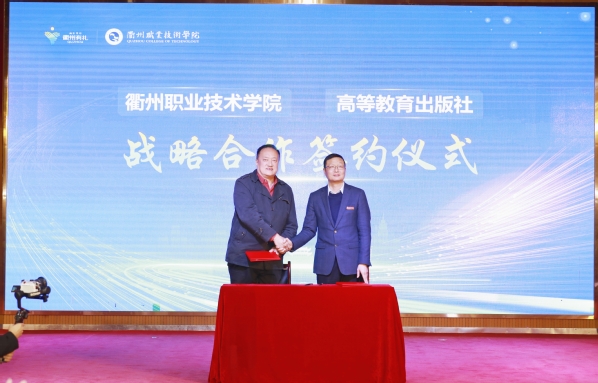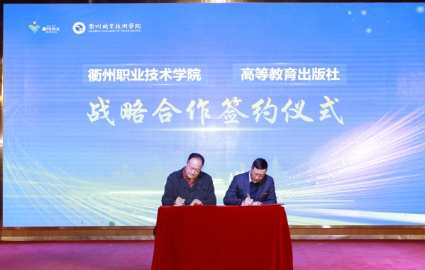 王冰和吕延文签署《校社战略合作协议》,进一步推进“三教”改革和教育数字化,探索职业教育一流核心课程和优质教材建设。