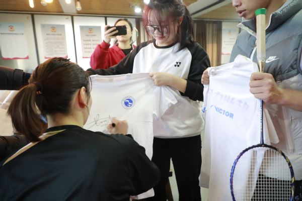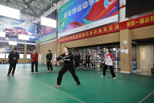 在衢职-鑫焱羽毛球学院,黄雅琼与我校师生近距离互动,认真指导,切磋球技,让师生们尽情享受羽毛球的魅力。