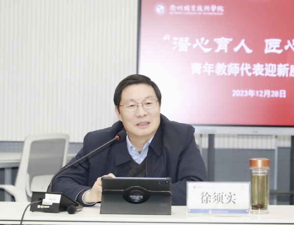 徐须实指出,新的一年,是学校能否如期实现“十四五”目标的关键之年,做好新一年的工作十分重要。青年强则学校强!希望青年教师们能够站稳讲台。要涵养师德,厚植育人情怀,真正从学生出发、对学生负责;要提升师能,着力提升教学能力和水平,真正让学生信服;要练就师技,要通过专业训练,在组织教学、与学生沟通交流、知识、道理传授方面进一步总结经验,传承时代工匠精神。要术有专攻。要结合职业教育特色,在人才培养、科学 研究、社会服务、文化传承与创新、国际教育合作等方面,根据自己实际情况,找准自身位置,并做好规划,努力成为职业教育的行家里手。要持之以恒。成功不可能一蹴而就,天道酬勤、功不唐捐!要有一种锲而不舍的钉钉子精神,苦练本领,在日积月累中定收获质变,为学校高质量发展贡献力量。