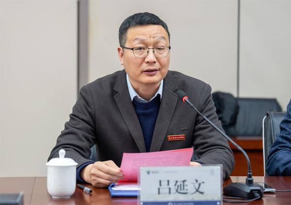 吕延文致辞。他指出,衢职院与华夏航空控股开展深度合作,共建共管衢职院-华夏航空产业学院,是校企双方合力共建专业人才培养摇篮的一件大事,也是我市校企深度合作推进产业高质量发展、服务衢州经济社会发展、助力四省边际共同富裕示范区建设的先行示范。他表示,衢职院将以此为契机,充分发挥职业教育基础性和先导性作用,通过高起点高标准高质量建设衢职院-华夏航空产业学院,共建共融服务华夏航空控股战略发展布局,产教融合构建校企合作命运共同体等举措,与华夏航空控股同心同力、同向同行,高质量建设衢职院-华夏航空产业学院,打造高水平人才培养基地。