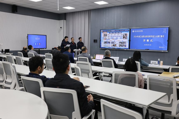 4月12日,我校成功举办2024年浙江省高职院校教学能力比赛校级选拔赛决赛。本次比赛共13支参赛团队入围现场决赛,邀请到了五位来自省内外的评委老师,二级学院(部)教学副院长(副主任)、专业主任、近五年新进教师代表,拟参加2024年省赛教师团队及教务处相关人员参加。我校副校长姚水洪亲临现场观摩比赛,教务处处长王建主持。