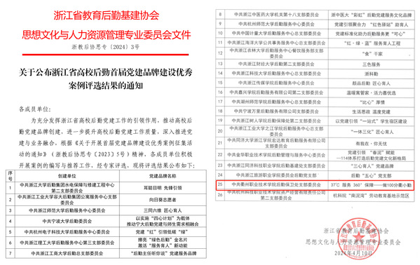 喜报!后勤保卫处党支部党建品牌成功入选浙江省高校后勤首届党建品牌优秀案例
