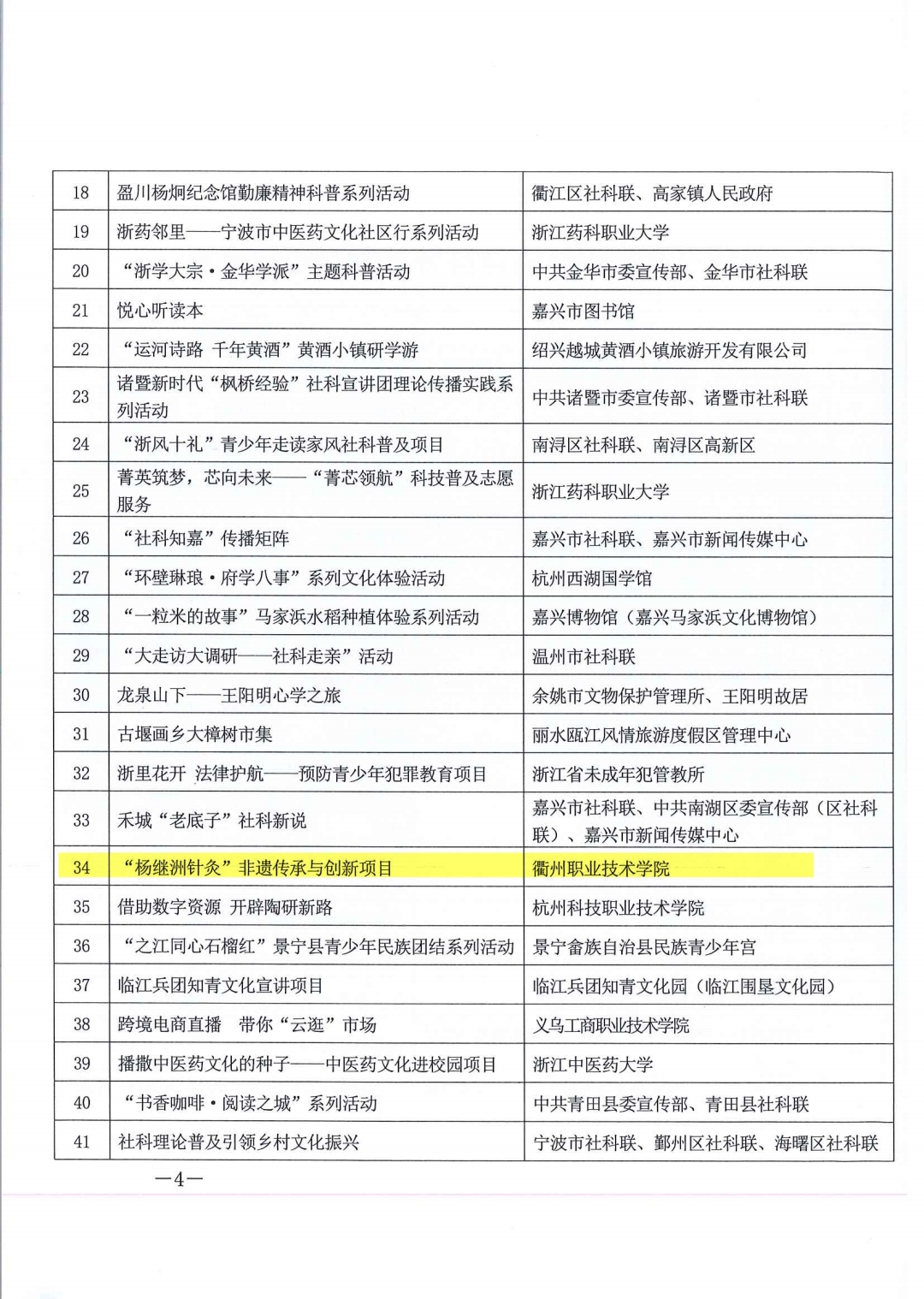 近日,浙江省社科联公布了2023年度浙江省社科普及创新活动案例等评选结果,医学院针灸推拿专业申报的《“杨继洲针灸”非物质文化遗产传承与创新项目》成功入选。