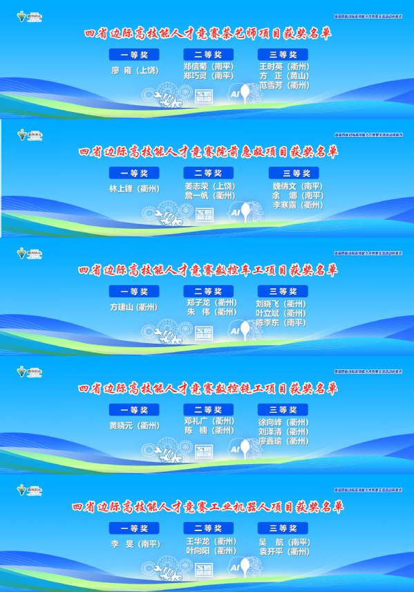 校党委委员、副院长徐浪静为数控铣工项目颁奖。党委副书记何百通为数控车工项目颁奖。衢州市人力社保局四级调研员黄祖愿为工业机器人项目颁奖。衢州市市场监管局党委副书记、副局长樊勇军为茶艺项目颁奖。衢州市卫健委党委副书记、副主任雷晓燕为院前急救项目颁奖。