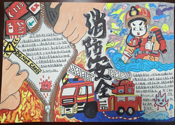 活动邀请同学们围绕学生公寓安全的多个方面展开创作。在创作过程中,同学们尽情挥洒创意,运用了彩色铅笔、水彩、剪贴画等多种艺术手法,将原本枯燥的安全知识转化为一幅幅色彩斑斓、生动有趣的手抄报。有的作品以消防安全为主题,通过生动的火灾逃生场景描绘,提醒同学们时刻保持警惕;有的作品则聚焦于用电安全,用形象直观的漫画形式展示了正确用电的重要性;还有的作品结合防盗防骗知识,巧妙融入智斗骗子的故事情节,既富有教育意义又引人入胜。