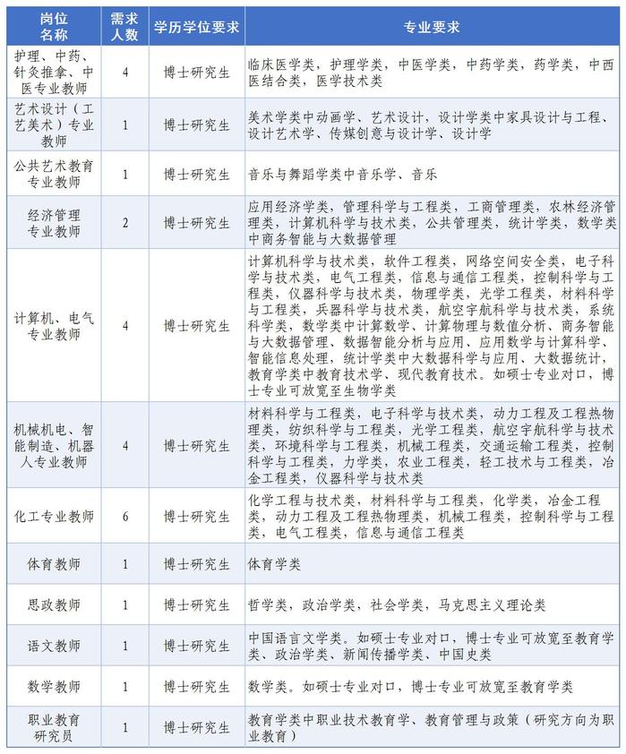 3.博士研究生或具有高级职称年龄一般不超过45周岁(19791231日后出生)。属于高次高技能人才可根据学校急需程度、人才层次、技术技能水平等适当放宽年龄要求。