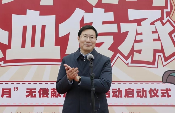 校党委书记徐须实宣布“雷锋精神 热血传承”无偿献血活动正式启动。