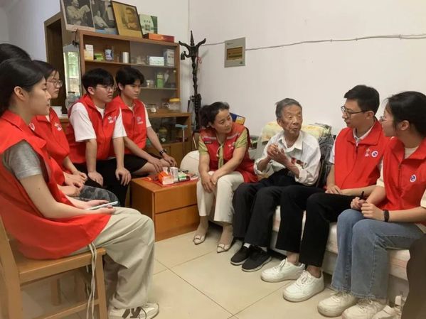 在寻访关爱环节中,我校大学生志愿服务队成员分成两组,分别来到97岁参加抗美援朝老兵魏绪先和63岁参加对越自卫反击战老兵胡坤前家中,聆听他们的亲身经历以及在那段烽火岁月里的热血故事,让那段波澜壮阔的历史在娓娓道来中重现,为我校大学生志愿者带来直击心灵的精神洗礼,通过老兵讲述亲身经历的方式给大家上了一堂特殊的思政课。